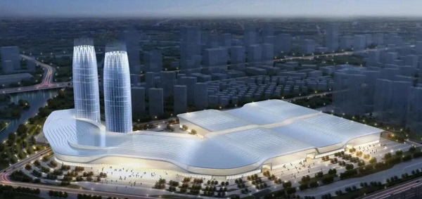 台州国际博览中心以“山海之境,行云流水”为理念,设计了两栋149.95米的超高层建筑和10.5万平方米的展馆,包含7个展厅、3890个标准展位,集展览、会议、办公、酒店、商业等功能为一体,该项目的桩基工程预计2022年5月完工。